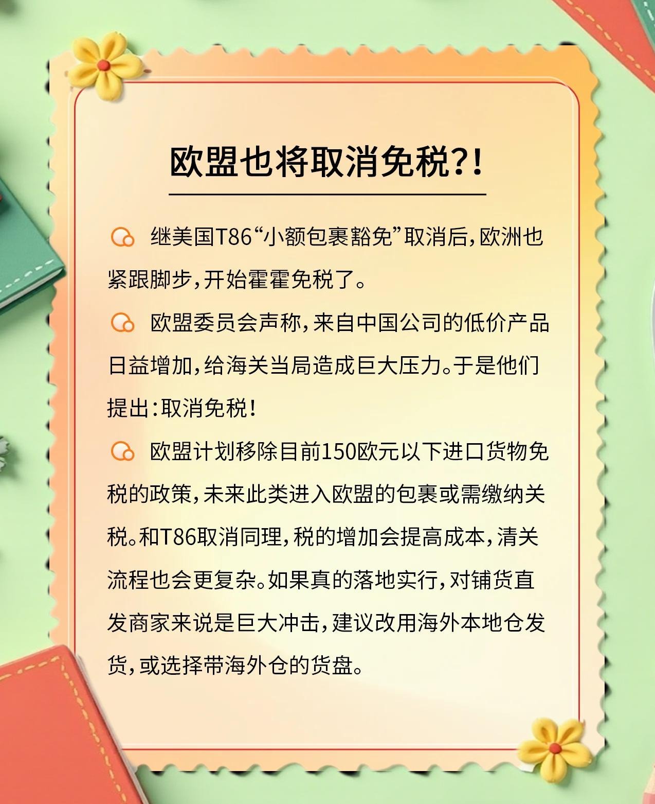 歐盟全面取消 150 歐元以下包裹免稅政策