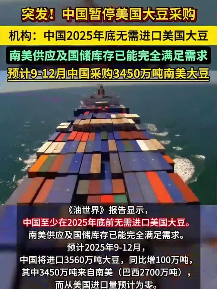 中國海關總署今日發佈公告,因從進口的美國大豆中檢出麥角和種衣劑成分,自公告之日起暫停 CHS Inc.、LOUIS DREYFUS COMPANY GRAINS MERCHANDISING LLC、EGT, LLC 三家美國企業的大豆輸華資質。此舉旨在保障中國消費者健康和糧食安全,涉及企業需整改並重新申請資質後方可恢復出口。