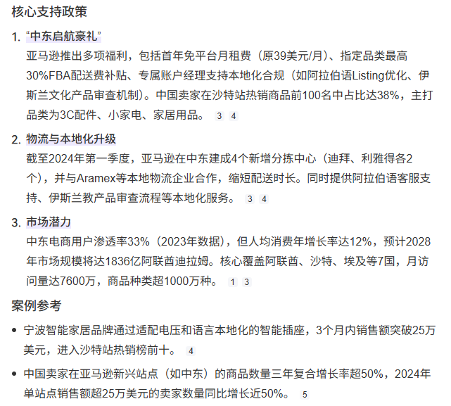 2025 年,亞馬遜中東站推出 “紅毯計畫”,為中國賣家提供首年免月租、30% FBA 配送費補貼及本地化合規支持(如阿拉伯語 Listing 優化)。沙特站熱銷商品前 100 名中,中國賣家占比達 38%,3C 配件、小家電成主力品類。寧波某智能家居品牌通過適配電壓及語言的智能插座,3 個月銷售額突破 25 萬美元。極兔速遞在阿聯酋、沙特建立全國性配送網路,菜鳥聯合速賣通升級中東物流,部分線路實現 “5 日達”。中東電商用戶滲透率僅 33%,但人均消費年增長率達 12%,市場潛力巨大。