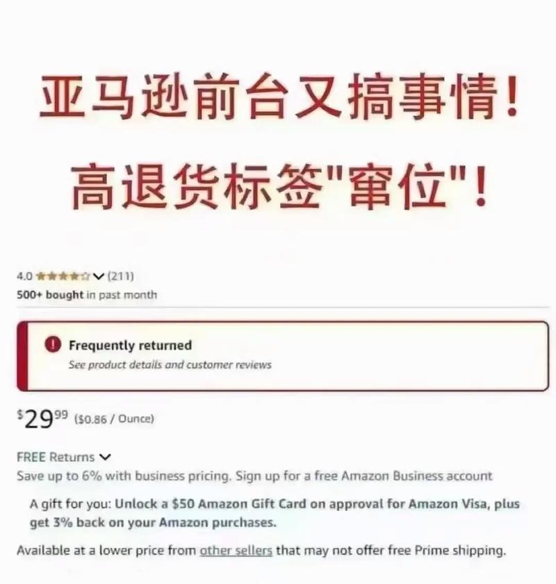 亞馬遜宣佈,將於 2026 年 2 月 16 日起,在部分商品頁面上線 “高退貨率商品” 提示標識(Frequently Returned Item Badge)。該標識將顯示在退貨率顯著高於同類商品平均水準的產品列表中,旨在提升退貨資訊透明度,幫助消費者在下單前做出更理性的購買決策,減少因預期與實際不符而導致的退貨。這是對現有 “低於平均退貨率” 正向標識的補充,平臺建議被標注的賣家關注消費者評論,優化商品詳情頁資訊。